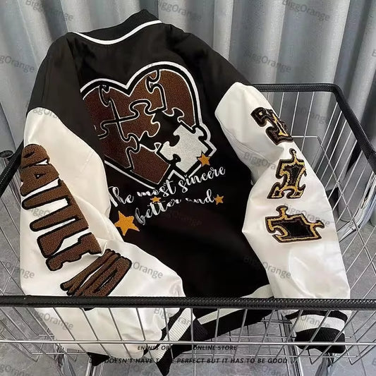 Spring and Autumn Retro Quilted Embroidered Baseball Uniform Jacket Men and Women Loose Tide Brand Street Jacket Couple Shirt