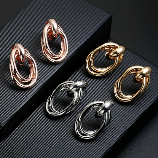 Shiny Golden Oval Shape Clip Earrings No Pierced for Women Punk Geometric Vintage Maxi Ear Clips Wedding Party Bohemian Jewelry