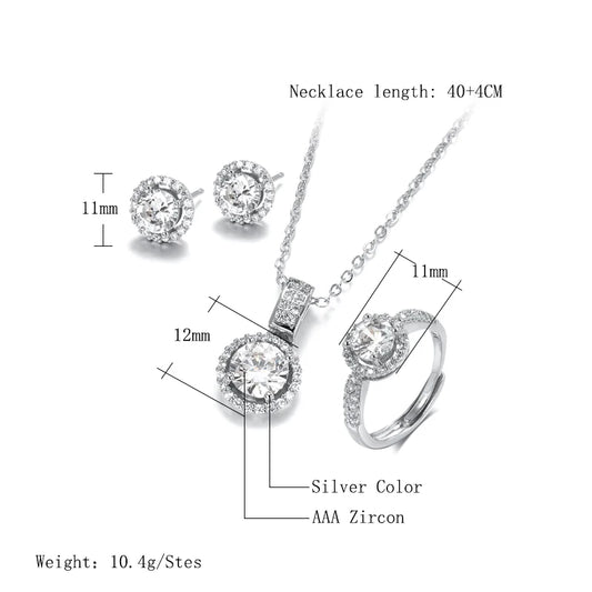 18K Gold Zircon Jewelry Sets Engagement Ring, Necklace, Earrings for Bridal Wedding!! Beautiful jewelry for someone you love.